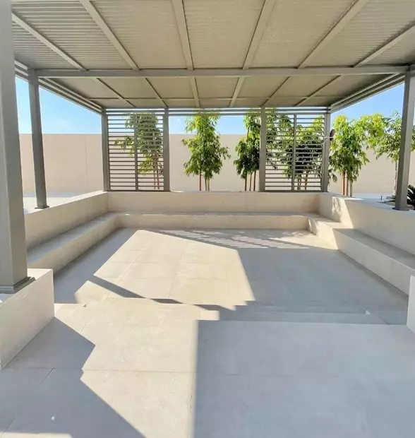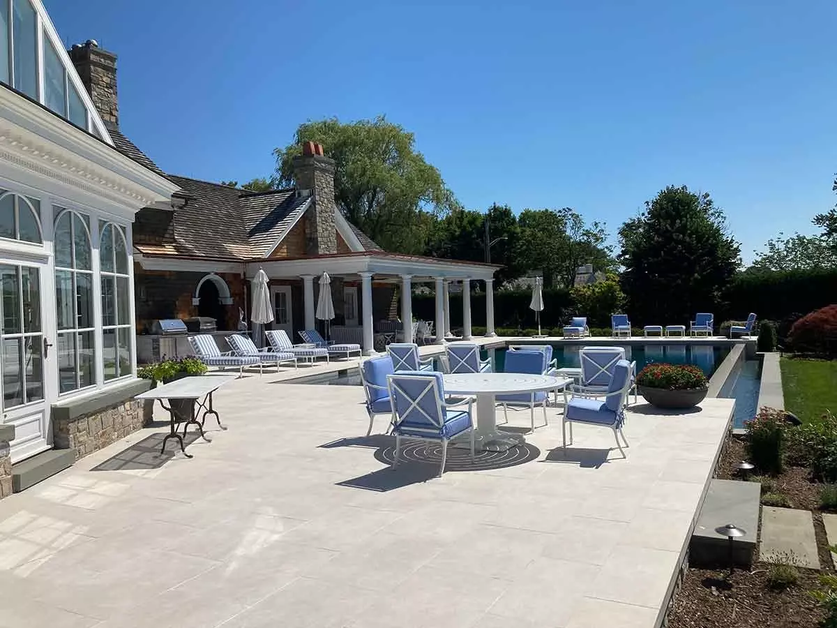 Zdjęcie z salonu Jasna płytka tarasowa, inspirowana dorsetskim wapieniem (Dorset limestone) – jasnym, kremowo-beżowym kamieniem pochodzącym z południowej Anglii, w szczególności z hrabstwa Dorset, słynącego z wapiennych klifów i unikalnych formacji geologicznych. Powierzchnia płytki zachwyca kolorem kości słoniowej z akcentami beżu i jasnej szarości, tworząc harmonijną, kompozycję idealną na tarasy i balkony.