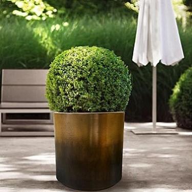 Donica wykonana w technologii tworzyw sztucznych (polietylen), pokryta polerowanym brązem oraz naturalną czarną patyną (nie używamy farb imitujących patyny). Produkt zarówno wewnętrzny jak i zewnętrzny. Powierzchnia zabezpieczona przed zmiennymi warunkami atmosferycznymi specjalnym lakierem.