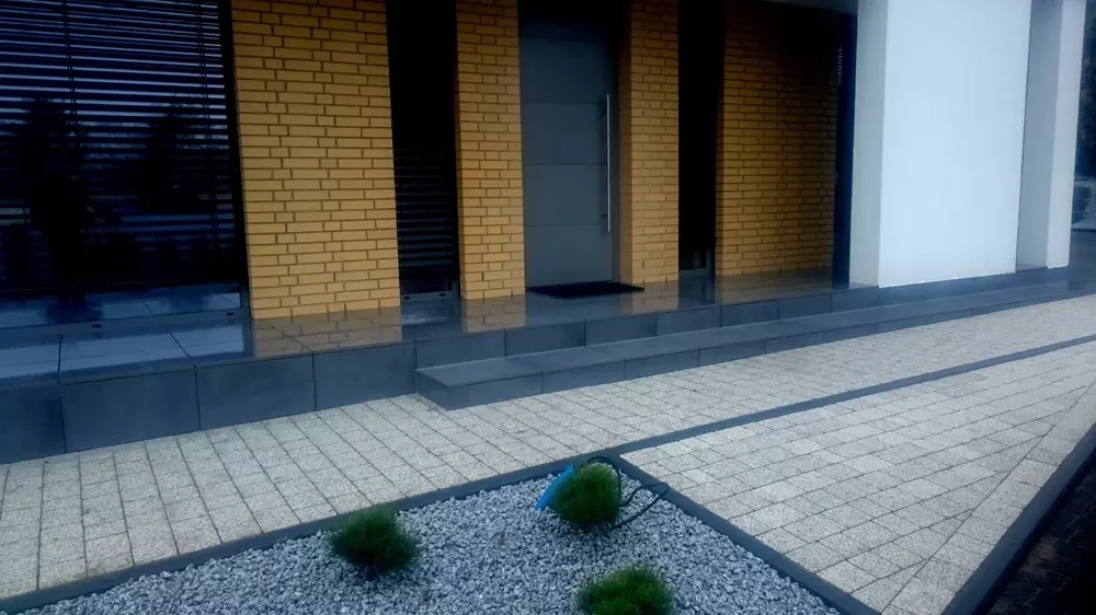 W prywatnej willi w Suchym Lesie klient zlecił nam wykonanie aranżacji wejścia do swojego domu. Schody zewnętrzne czyli wejście do domu jest wizytówką każdej posesji, a odpowiednio zaprojektowane i wykonane dodają tylko stylu bryle budynku. Wykorzystanie płyt tarasowych do stworzenia schodów i tarasu do drzwi wejściowych domu to rozwiązanie, które łączy w sobie funkcjonalność z lekkim eleganckim wyglądem. Dzięki odpowiedniemu doborowi materiałów i starannemu wykonaniu, można stworzyć schody do domu, które będą zachwycać przez wiele lat.