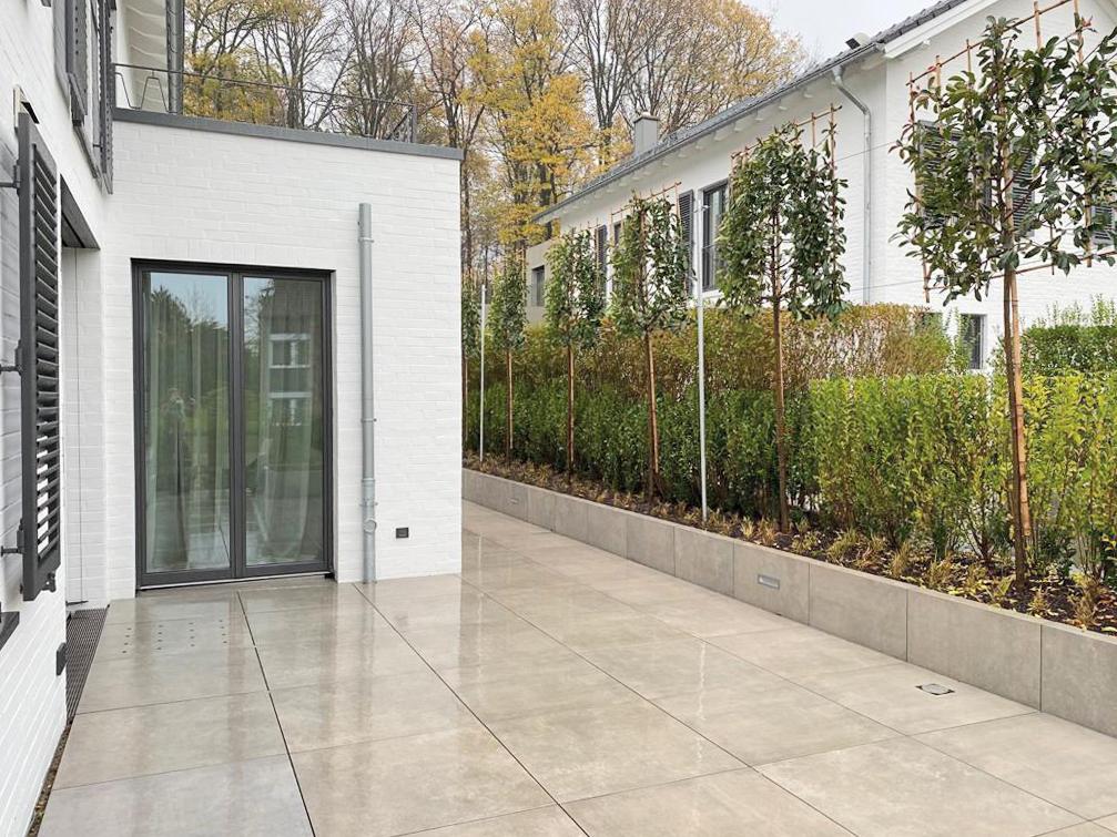 W prywatnym domu w Berlinie klient zdecydował się na ułożenie posadzki zewnętrznej z kamienia spiekanego o grubości 3 cm SUPER HARD KERAMIK 3 CM. Płyty wybrane do projektu to SUPER TWARDY KERAMIK 3 CM Basic Amalfi.