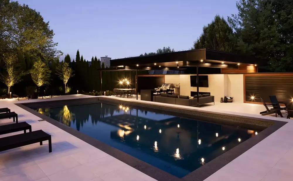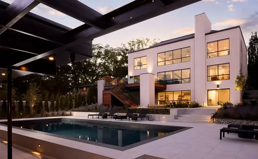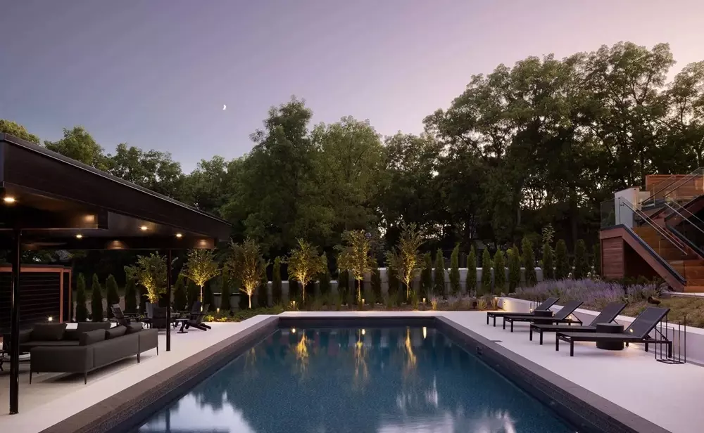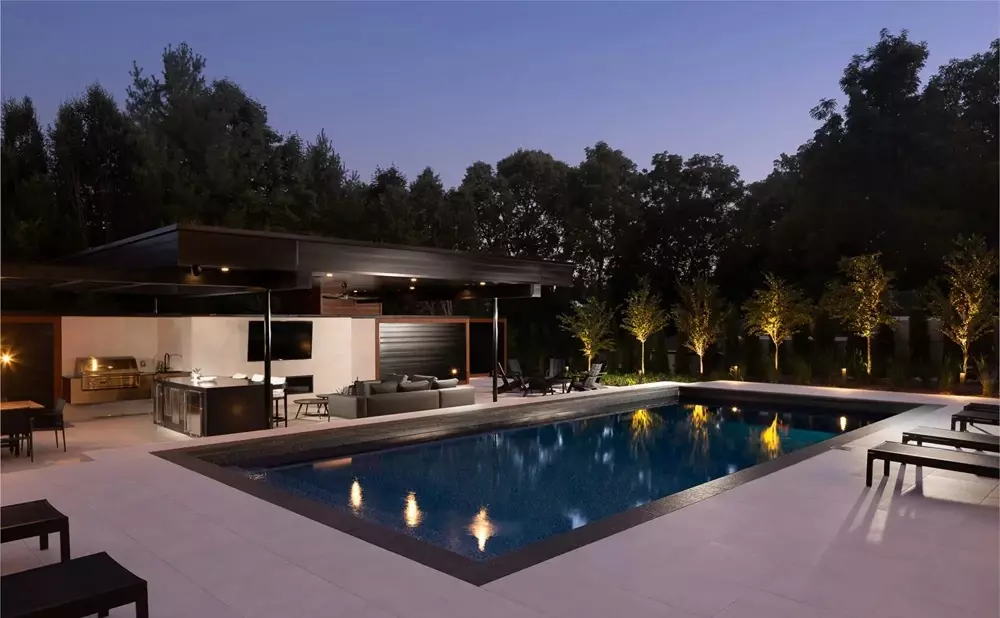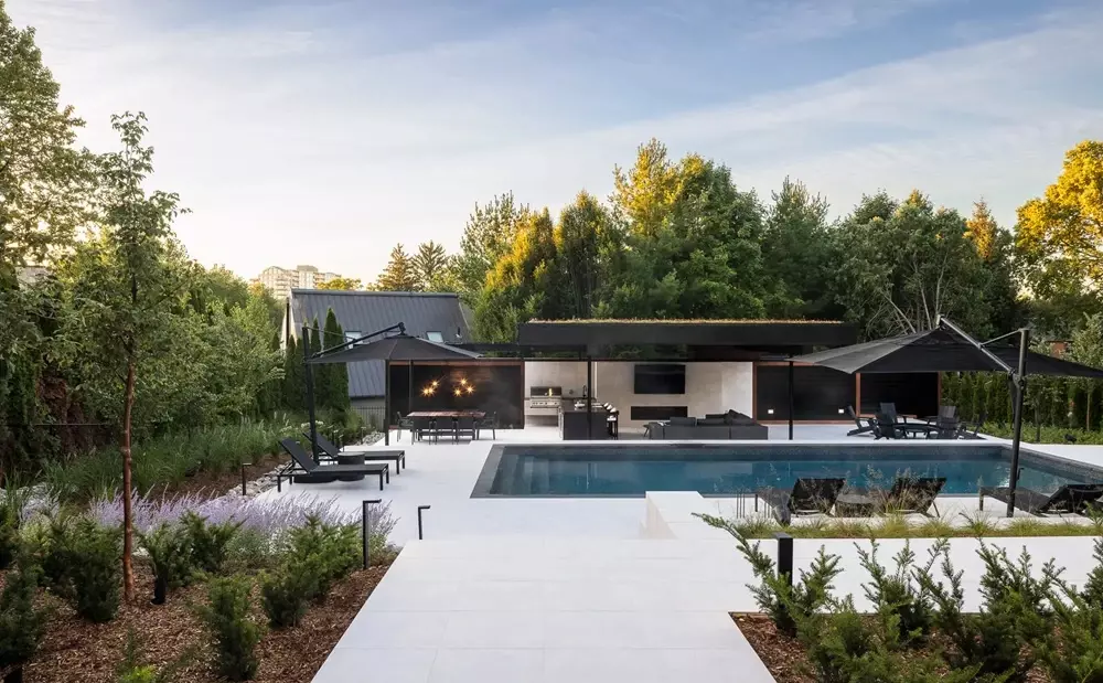 Kiedy promienie słońca odbijają się od jasnej powierzchni, biały taras przy basenie zamienia się w miejsce, gdzie czas płynie wolniej.