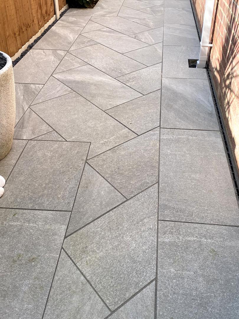 Płyty wybrane do projektu to HARDSCAPE PORCELANA Etna Light Grey 40x80x2cm