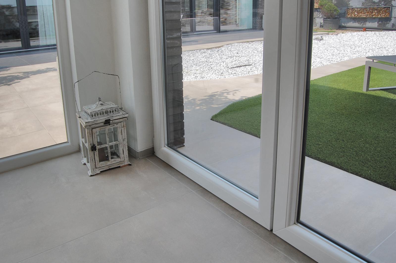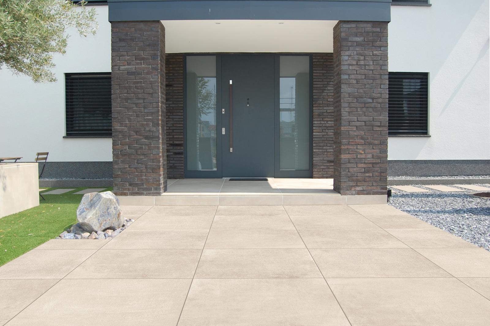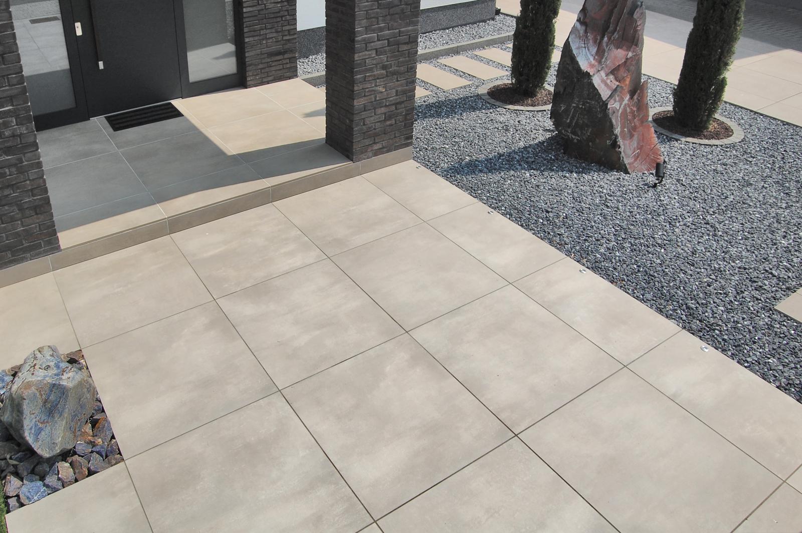 W prywatnym domu w Karpen klient zdecydował się na ułożenie posadzek zewnętrznych z kamienia spiekanego o grubości 2cm z wykorzystaniem kilku różnych kolekcji. Wybrane produkty to Selva Borneo, Cattedrale Cemento, Cattedrale Moka, Cemento Taupe-CE OW AP HP.