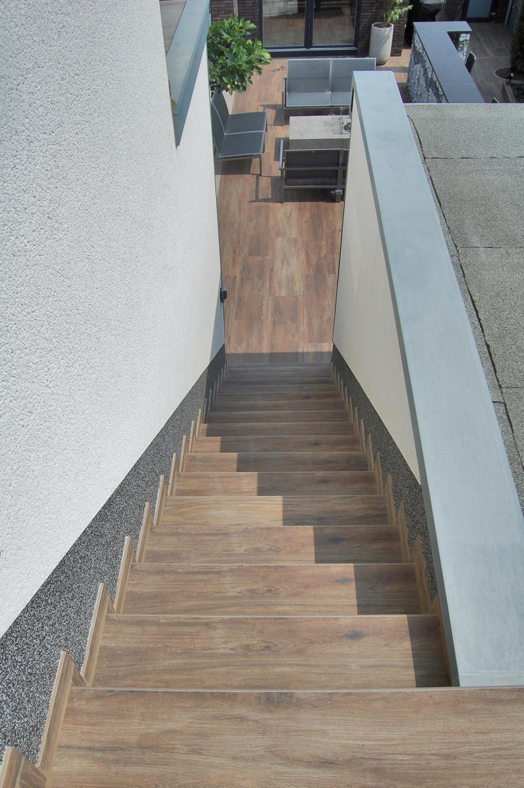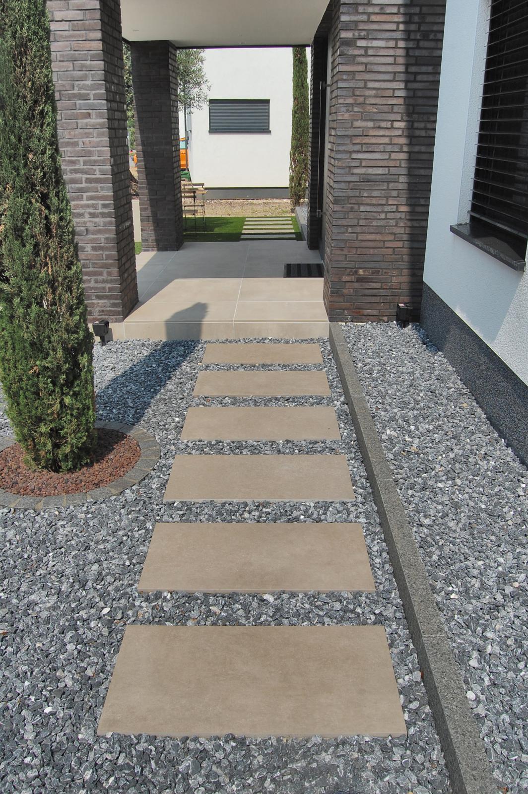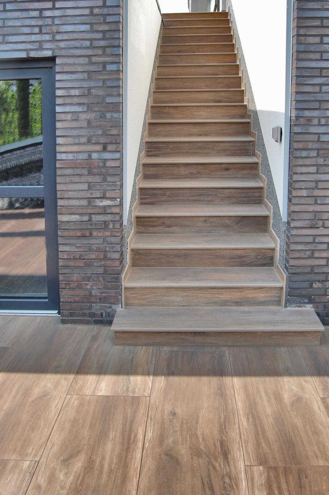 W prywatnym domu w Karpen klient zdecydował się na ułożenie posadzek zewnętrznych z kamienia spiekanego o grubości 2cm z wykorzystaniem kilku różnych kolekcji. Wybrane produkty to Selva Borneo, Cattedrale Cemento, Cattedrale Moka, Cemento Taupe-CE OW AP HP.
