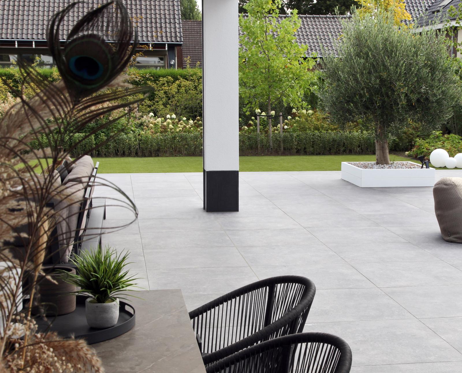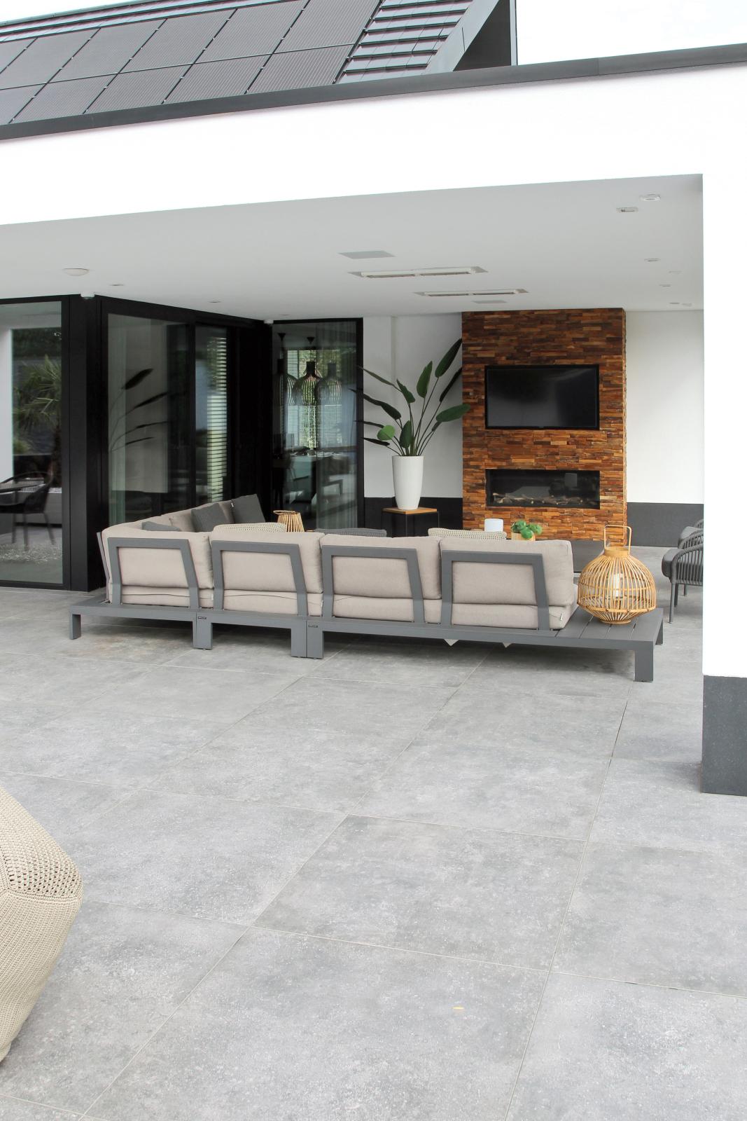 W prywatnym domu w Kerkdriel klient zdecydował się na ułożenie posadzek zewnętrznych z kamienia spiekanego o grubości 2cm z wykorzystaniem kolekcji Pietra Moon 90x90x3 cm e Colosseo Grigioni XXL 240x120x2 cm-CE AP S3 Colosseo Pietra di Gerusalemme 120x120.