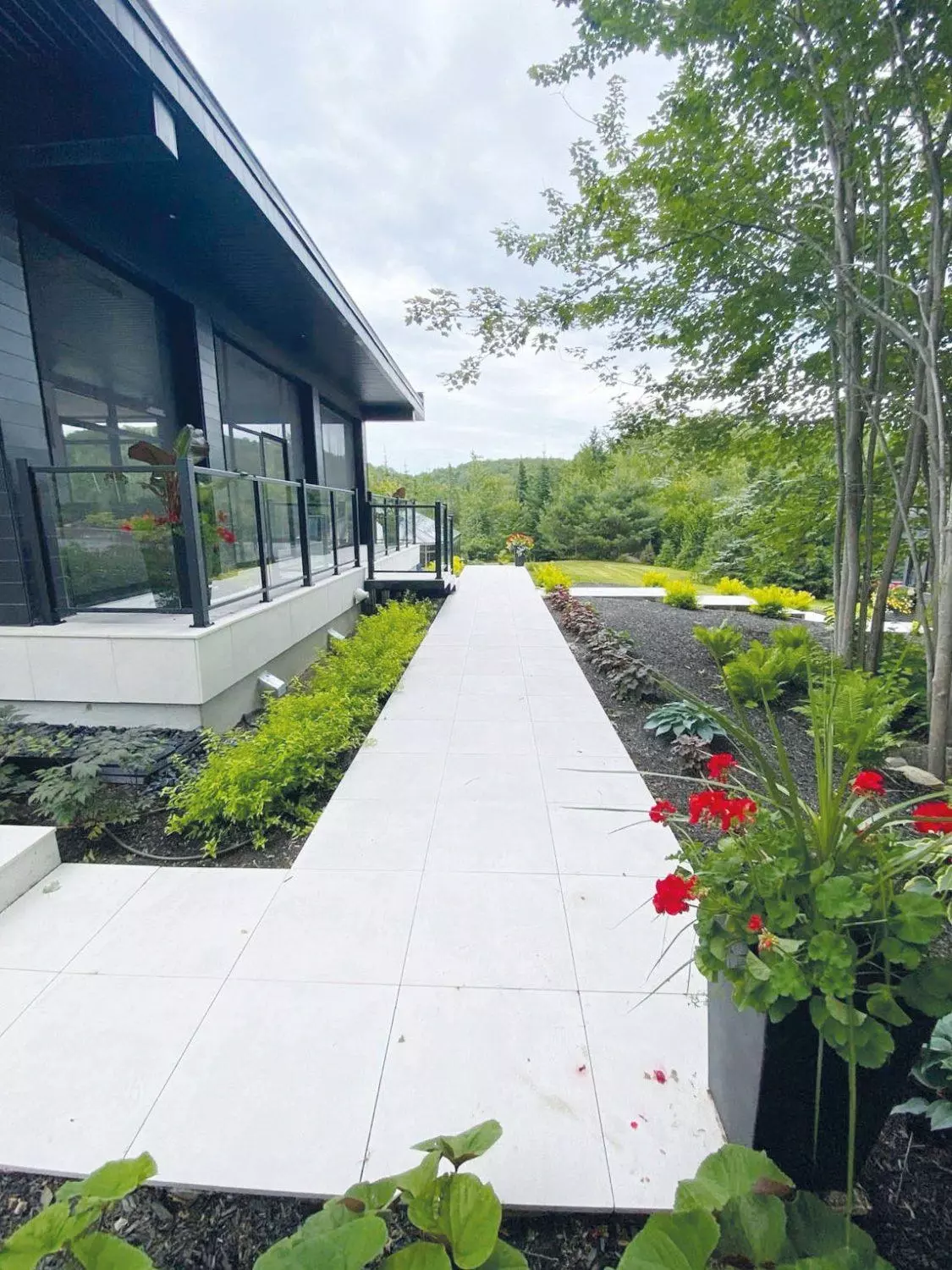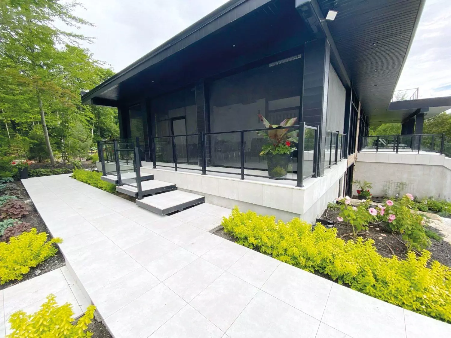 To jedna z bardziej wymagających realizacji – połączenie tarasu, schodów wejściowych, ścieżek ogrodowych i strefy basenowej w jedną całość. Wszystkie elementy wykonano z tej samej, jasnej płyty tarasowej, co wymagało dopasowania i dokładnego wykonania. Efekt końcowy to prawdziwe wow, co najlepiej widać na zdjęciach. Płyty tarasowe w kolorze jasnego betonu podkreślają charakter poszczególnych stref i tworzą nowoczesne, tło dla całego domu. Dzięki takiej kolorystyce przestrzeń stanowi wyjątkowy kontrast z ciemniejszą bryłą budynku – nie sposób przejść obok niej obojętnie. Do realizacji wykorzystano płyty Porcea Aura White 60x60x2 cm z kolekcji płyt imitujących beton. Jasne odcienie łączą się z otoczeniem, a jednocześnie wyróżniają architekturę budynku. Płyty te charakteryzują się niską nasiąkliwością, mrozoodpornością i wysoką odpornością na warunki atmosferyczne. Projekt udowadnia, że taras z białych płyt betonowych może być stanowić tło dla budynku oprócz zachowanej funkcjonalności w codziennym użytkowaniu. Potwierdzeniem jest ta wyjątkowa realizacja.