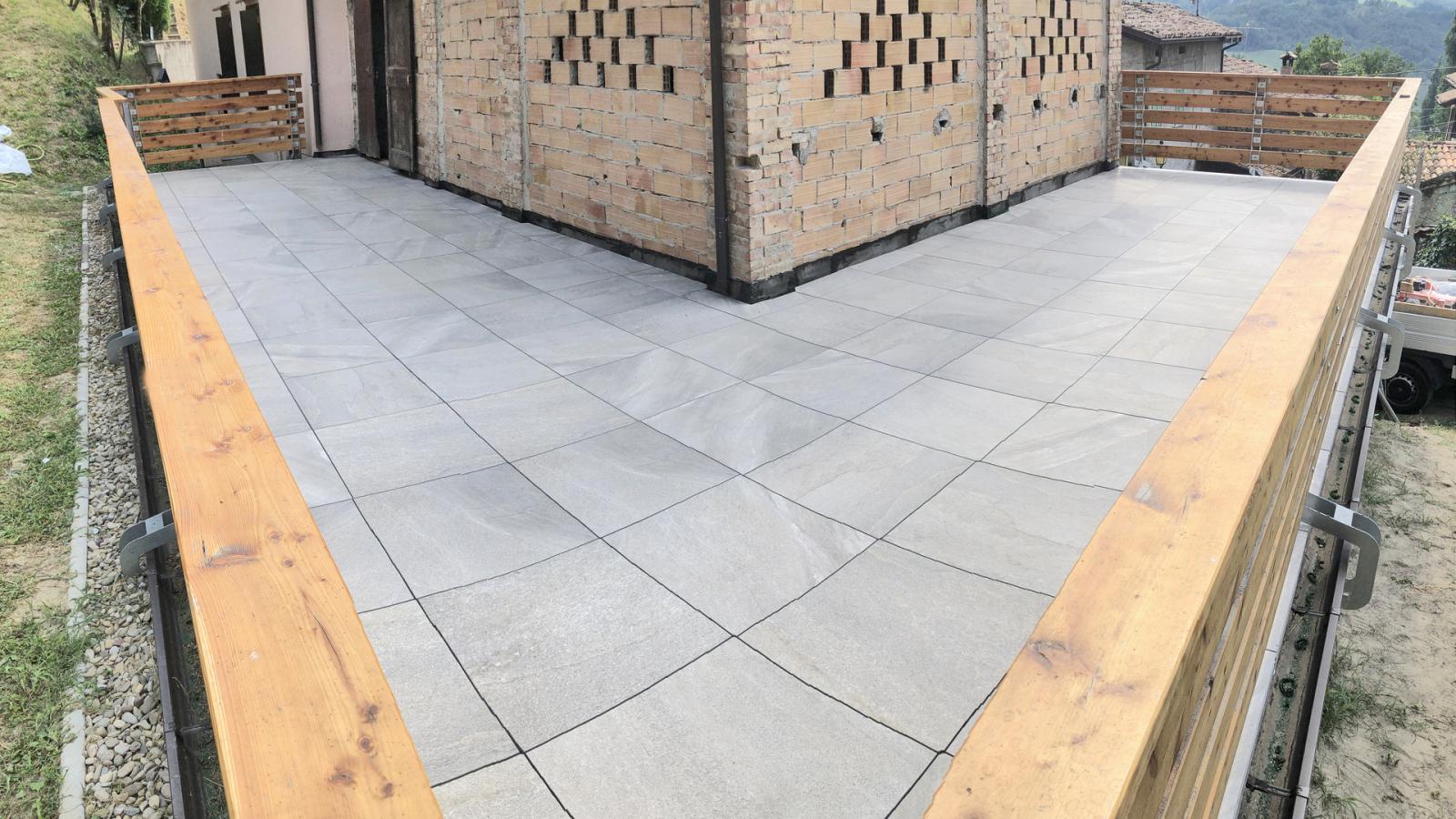 W prywatnej rezydencji w Vetto wybudowano taras z kamienia spiekanego.
