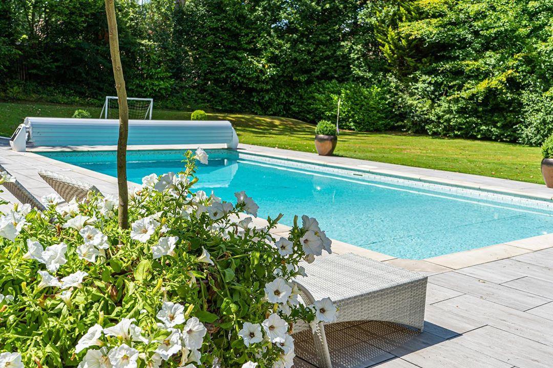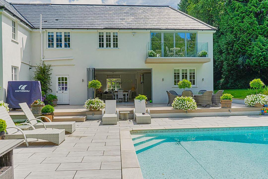 W willi w Blockley w Anglii wokół całego basenu położono podłogę OUTDOOR WOOD 2 CM imitującą drewno.