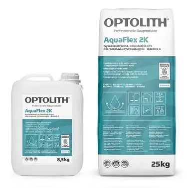 Hydroizolacja dwuskładnikowa AquaFlex 2K- to elastyczna, cementowa zaprawa uszczelniająca, chroniąca powierzchnie i konstrukcje przed wodą pod ciśnieniem. Tworzy trwałe, elastyczne powłoki mostkujące pęknięcia, idealne do łazienek, natrysków, pralni, balkonów, tarasów, basenów i zbiorników na wodę. Może być stosowana również w renowacji. Produkt powstaje z wymieszania dwóch składników w odpowiedniej proporcji wagowej, co zapewnia wysoką szczelność i wytrzymałość.