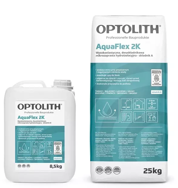 Produkt charakteryzuje się wysoką elastycznością, dzięki czemu skutecznie mostkuje rysy do 2 mm oraz nadaje się do stosowania na podłożach narażonych na odkształcenia, np. w systemach ogrzewania podłogowego i ściennego. Hydroizolacja dwuskładnikowa zabezpiecza również konstrukcje betonowe przed karbonatyzacją i korozją stali zbrojeniowej, chroniąc je przed chlorkami i siarczkami.