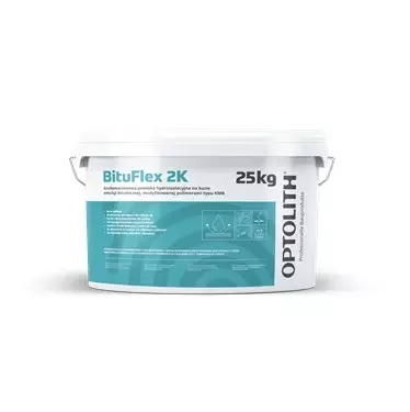 Masa bitumiczna. Izolacja grugowarstwowa typu KMB. BituFlex 2K to nowoczesny system izolacyjny, składający się z emulsji bitumiczno-polimerowej oraz dodatku mineralnego. Po wymieszaniu komponentów powstaje masa bitumiczna do izolacji fundamentów, charakteryzująca się wysoką elastycznością i trwałością. Preparat przeznaczony jest do wykonywania powłok hydroizolacyjnych w technologii grubowarstwowej, skutecznie zabezpieczających fundamenty, piwnice oraz inne elementy konstrukcji zagłębione w gruncie.