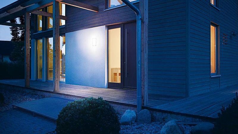 Lampa Steinel L 22 to idealne rozwiązanie do montażu przy wejściach do budynku, na elewację frontową oraz na patio. Gniazdo E27 pozwala użytkownikowi zamontować wybrane źródła światła o mocy maksymalnej do 60 W. Czujnik z regulacją nachylenia (90°) wykrywa ruch w odległości do 10 metrów. Za pomoca dwóch potencjometrów użytkownik ustawia próg zmierzchowy oraz czas świecenia.