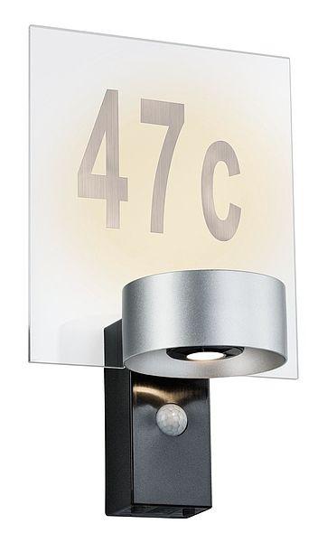 Oprawa naścienna House Cone rzuca ciepłe, białe światło w pionie — jednocześnie w górę i w dół. Świetlówka jest niewidoczna od zewnątrz, dlatego idealnie sprawdzi się do łagodnego podświetlania elewacji bez efektu olśnienia. Dzięki odpowiedniej przystawce (którą można nabyć oddzielnie) oprawa ta może pełnić rolę podświetlanego numeru budynku. Czujnik ruchu automatycznie włącza światło w ciemnościach, gdy ktoś zbliży się do lampy. Można wybrać kąt rozsyłu 30, 60 lub 90 stopni — wystarczy wstawić odpowiednią soczewkę z kompletu.