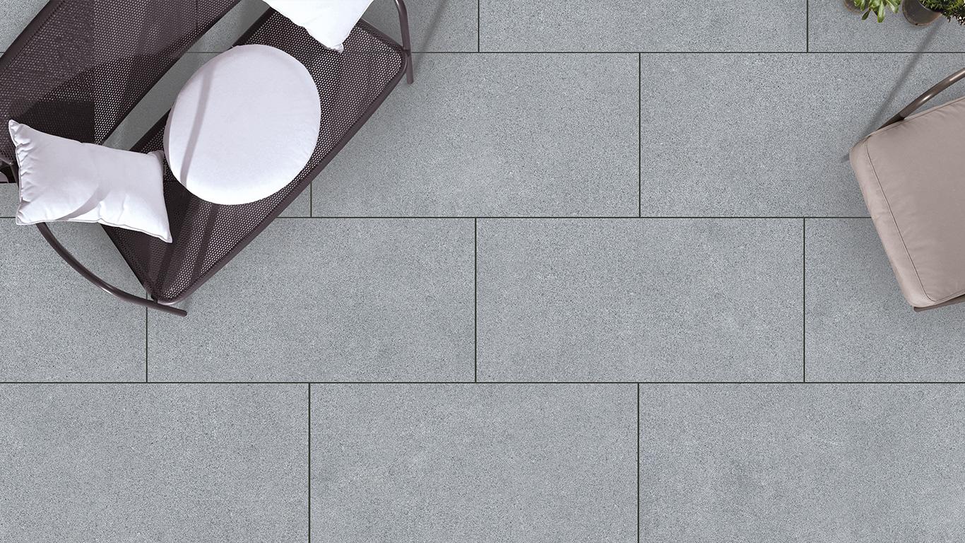 Zdjęcie z salonu Płytka tarasowa odwzorowuje chiński granit G654, znany z szaro-antracytowej szarości. Drobnoziarnista faktura płytki inspirowanej granitem G654 nadaje powierzchni jednolity wygląd. Kolorystyka jest stała, głęboka szarość i drobne czarne kryształki pozostają jednolite na całej powierzchni.