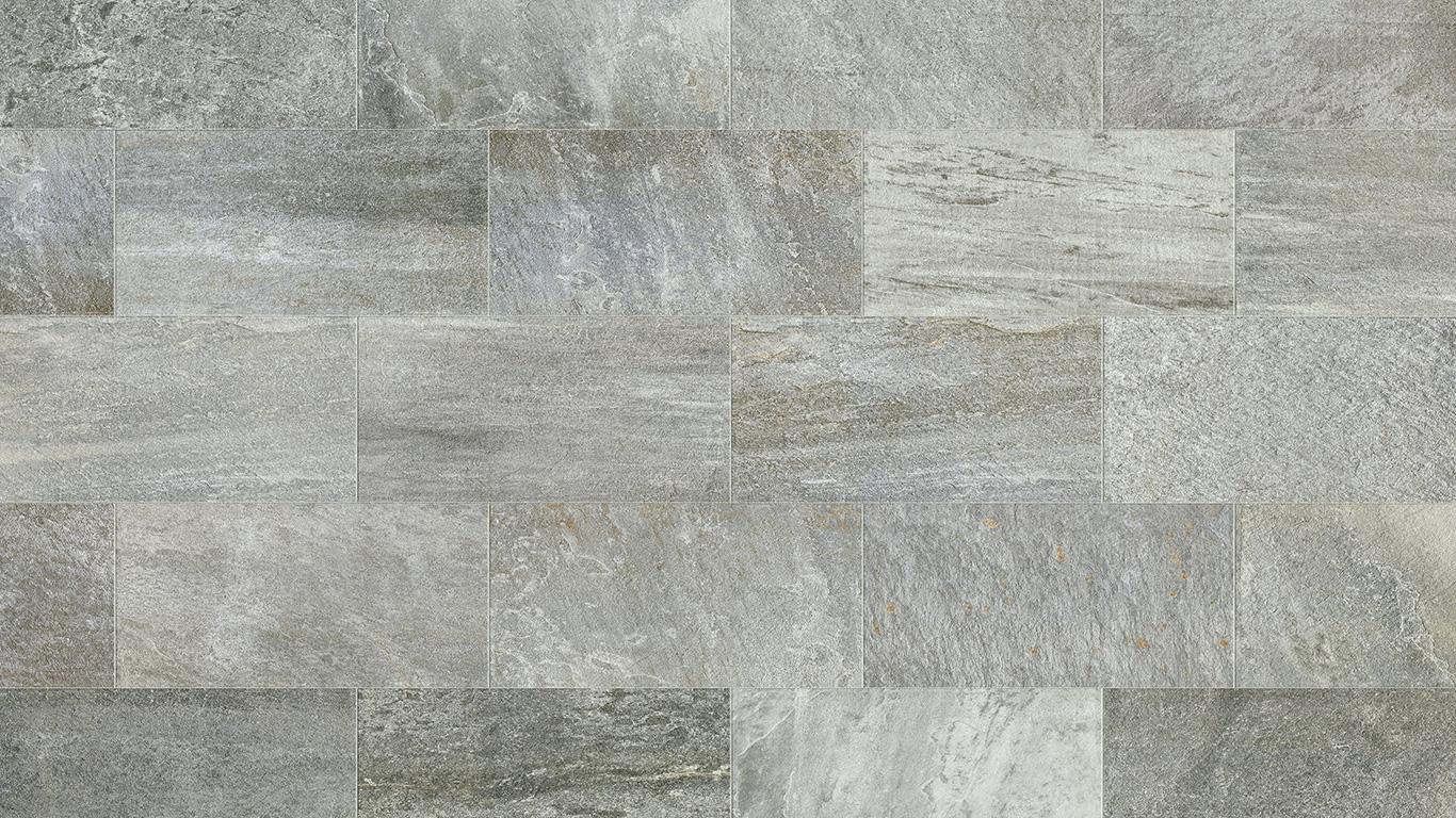 Zdjęcie z salonu Każda płyta tarasowa Torre Quarzite Grigia ma delikatnie teksturowaną powierzchnię, która odwzorowuje naturalne żyłkowanie kwarcytu. Jasnoszary kolor z lekkimi przejściami tonalnymi nadaje materiałowi głębi, dzięki czemu przestrzeń, wydaje się bardziej przestronna i harmonijna. Płytka nie tylko wygląda autentycznie – faktura i wykończenie nadają powierzchni charakter „dotykalny” – pod palcami wyczuwalna jest delikatna matowość., a wizualnie każdy detal wydaje się spontaniczny i niepowtarzalny